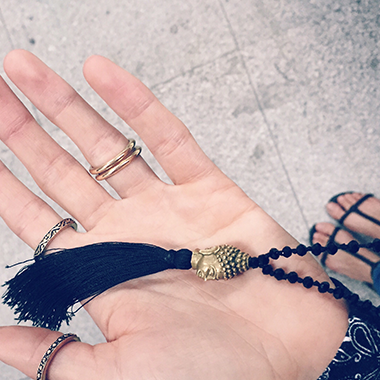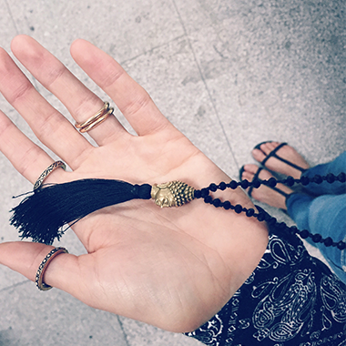 Malas commonly come as a string of 108 beads, often with a 109th head bead, the ‘guru bead’ to act as a stabilising force for the other beads to turn around, like planets turn around the sun.